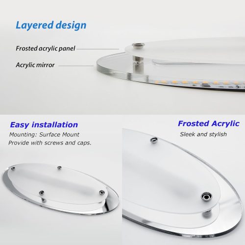 Operating voltage: 12V DC • Lighting color: Cool White and Blue • Luminous flux: 550/1100 lumens • Low power consumption: 7.4/14.8W, 0.58/1.16A • Convenience for on/off • 120 degrees flat angle light illumination provides additional ambient light • Provides even and soft light distribution without glaring • Surface screw mounting design, caps provided to cover the screws which will leave a clean finish after installation • Long life span reaches 50,000 hours • Easy installation, surface mounted • Weight: 250g • Dimension: 400X190X18.5mm