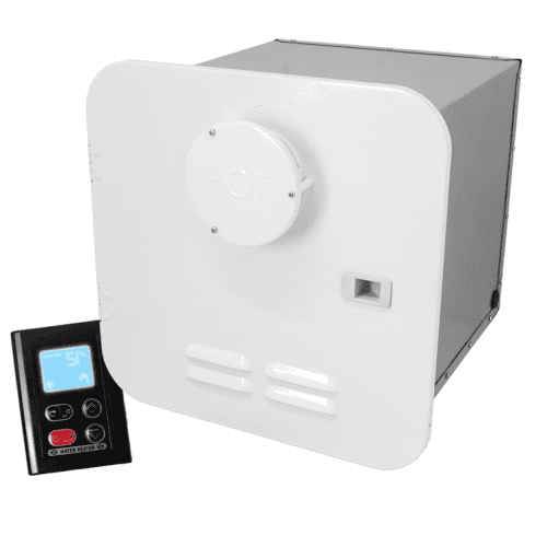 Experience endless hot water supply with the Girard tankless RV water heater. Easy to install and operate, this lightweight heater fits into any standard water heater opening such as the Suburban HWS. Its onboard microprocessor monitors and regulates incoming and outgoing water temperatures and flow rate for consistent hot water supply. The hinged door and silicone exhaust ring make it user-friendly and easy to maintain. An indoor wall-mounted digital controller allows temperature adjustments from 35 to 51C and features visual diagnostics for troubleshooting. Designed specifically for mobile lifestyles, it consumes around half the LPG of standard 23 litre storage tank water heaters.Features: