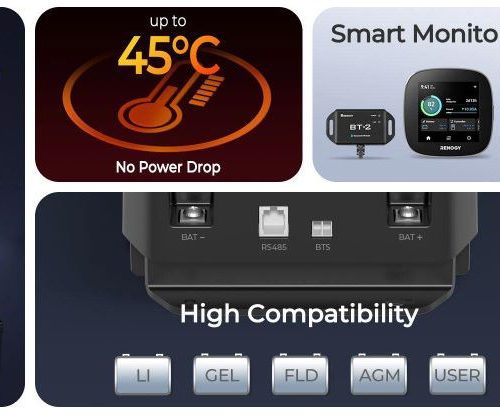 -Alternator running detection safeguards the starter battery. -Simple and compact layout for easy installation. -BT-2 Bluetooth enables remote monitoring, records 365-day data. -Advanced protections ensure efficient & safe charging. -Li Battery Activation On/Off offers customizable performance.Our charger is compatible with the following 12V battery types by default:AGM (Absorbent Glass Mat) FLD (Flooded Lead-acid) GEL (Gelled Electrolyte) SLD (Sealed Lead-acid)In addition, our charger also features a custom mode,which can be adjusted according to the specific needs of different batteries to ensure optimal charging performance. -